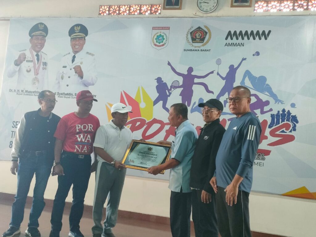 Sementara penghargaan tersebut diserahkan Ketua PWI NTB,Nasruddin Zein dalam kegiatan pembukaan seleksi atlet Pekan Olahraga Wartawan Nasional (PORWANAS) PWI NTB yang bertempat di rumah kediaman Bupati KSB,Kamis (9|5).