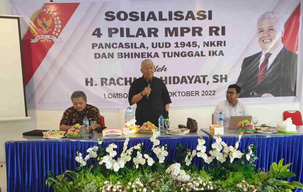 LOMBOKita – Angggota DPR RI dari Fraksi PDI Perjuangan H Rachmat Hidayat kembali menyosialisasikan Empat Pilar Kebangsaan. Senin (24/10/2022) di Lombok Timur.