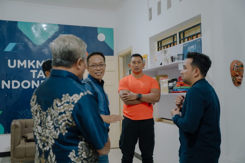LOTIM LOMBOKita – Penjabat Bupati Lombok Timur HM Juani Taofik didampingi Fasilitator Rumah BUMN Pertamina Lotim Didi, Dandim 1615 Lombok Timur Letkol Inf Bayu Sigit Untoro, Kadis Koperasi Dan UMKM Lotim Safwan serta UMKM binaan Rumah BUMN Pertamina, melakukan ngopi bareng serta menonton film hasil kreasi anak muda Lombok Timur, di rumah BUMN Pertamina, Jumat malam (19/7).