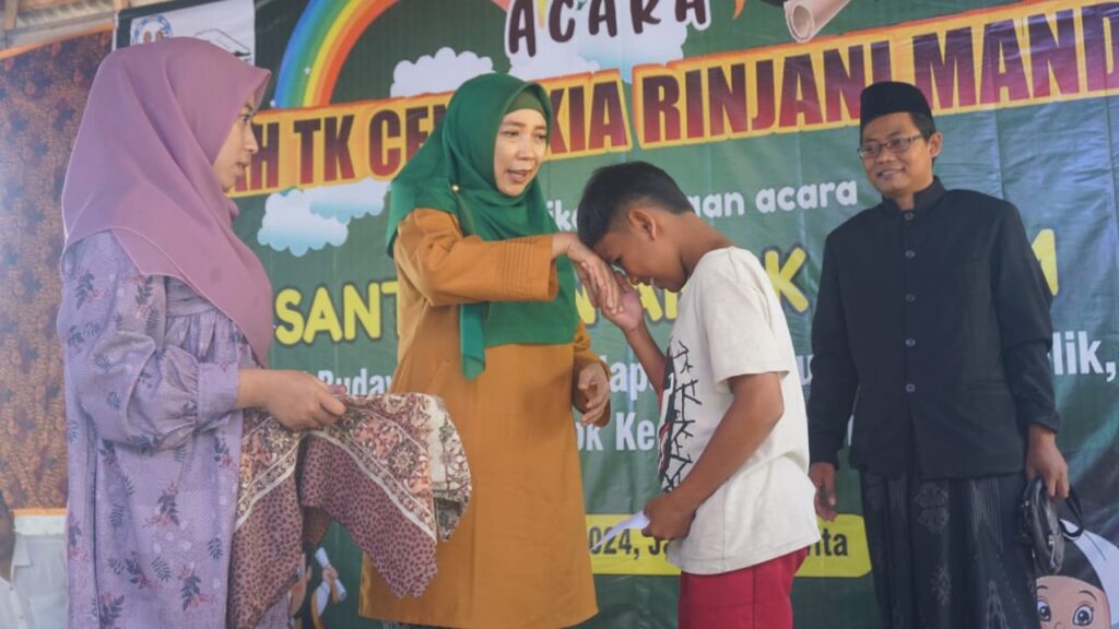 Disambut tabuhan gendang beleq khas kesenian suku Sasak, Ummi Rohmi, sapaan populernya, menyapa warga dan menyalami mereka.