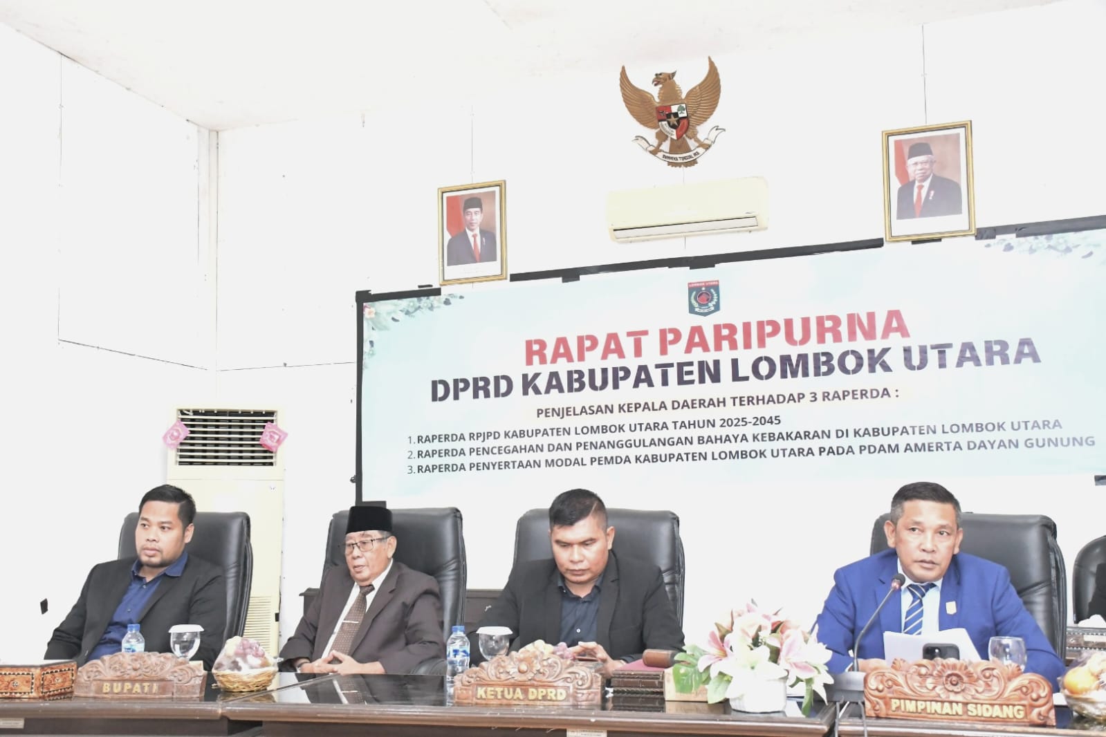 Adapun Raperda yang di disampaikan yakni Raperda RPJPD 2025-2045,Raperda Pencegahan dan penanggulangan Bahaya Kebakaran serta Raperda Penyertaan modal Pemda Kabupaten Lombok Utara pada PDAM Amerta Dayan Gunung.