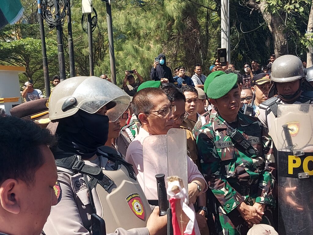 Aksi demo dikantor Bupati, para mahasiswa di terima wakil Bupati HM Edwin Hadiwijaya. Wakil Bupatipun langsung merespon apa yang menjadi tuntutam massa aksinya, seperti halnya keterbukaan publik.