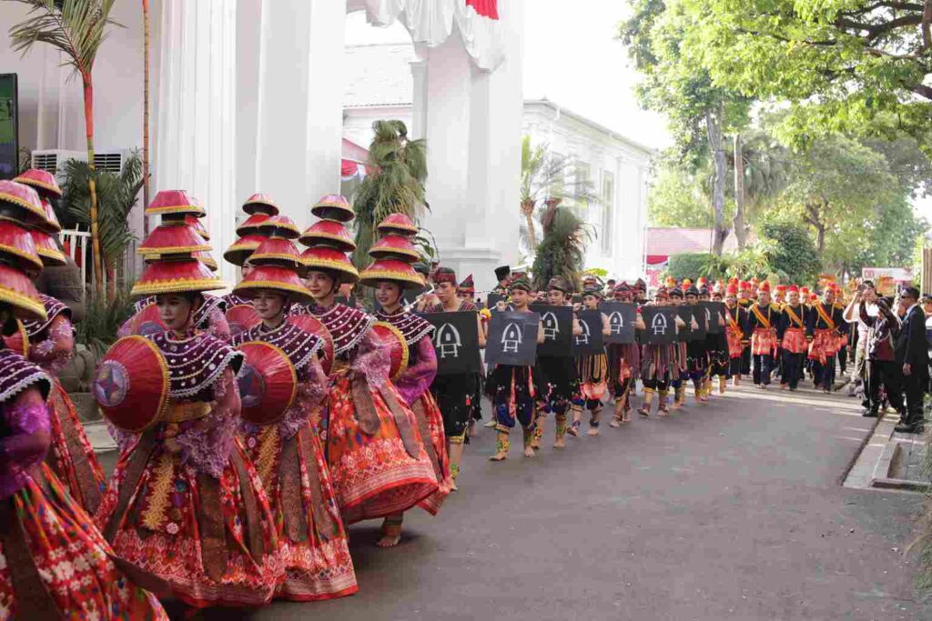 LOMBOKita – Tim Penari NTB yang membawakan Tari “Tembolak Beaq” dalam The Spirit of Sasambo di Istana Merdeka tampil Spektakuler sebelum penurunan Bendera Merah Putih, Minggu, (17/8)