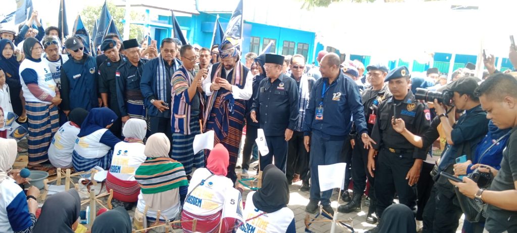 LOTIM LOBOKita – Ketua Umum Partai Nasional Demokrat (NasDem) Surya Paloh didampingi jajaran Dewan Pimpinan Pusat (DPP) Partai NasDem mengunjungi Sentra Tenun Desa Pringgasela, Kecamatan Pringgasela, Kabupaten Lombok Timur.