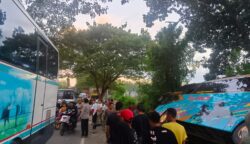 Diduga Menghindari Pengendara Sepeda Motor, Bus Surya Kencana Terguling Dijalan Negara
