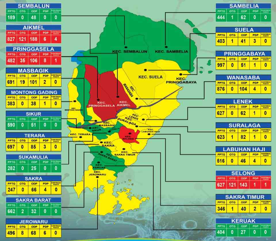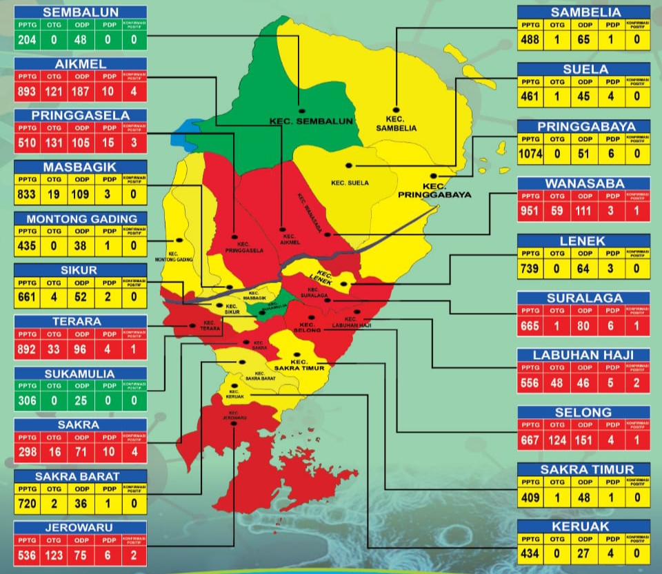 Data Covid-19 Lotim, Dua Kecamatan Zona Hijau, Sembilan Zona Merah