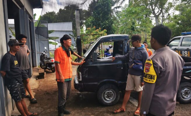 Gara gara Tabrak Batu, Mobil Pick Up Nyungsep di Parit