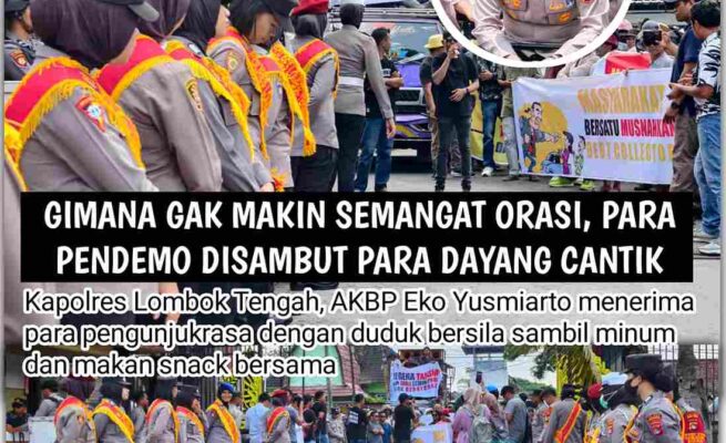Humanis, Pengunjukrasa Disambut Barisan Polwan Cantik Polres Lombok Tengah