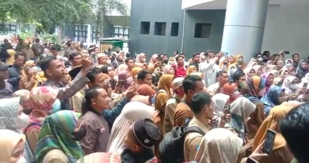 ” Kami para guru atau tenaga honorer tetap berharap tahun 2024 kami.diberikan THR seperti tahun tahun sebelumnya,dan sepalu dianggarkan tiap tahun,” teriak.pendemo, karena gaji 13 atau THR ini selalu diberikan jelang lebaran