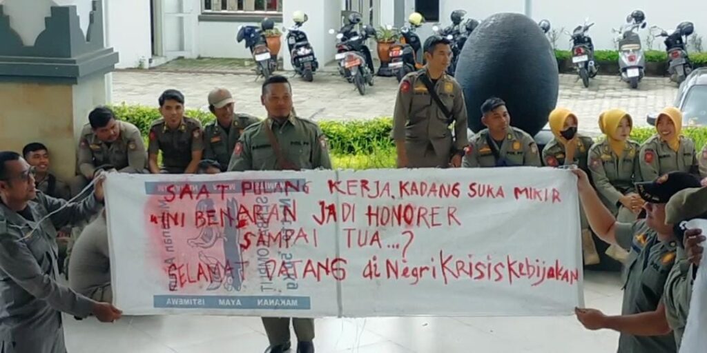 Pasalnya dari sekian puluh honorer yang lulus seleksi PPPK dan di tempatkan di satpolPP bukan anggota SatpolPP, melainkan dari instansi lain, hal ini yang menjadi pemicu kekecewaan dan protes dari honorer yang bertugas menjadi anggota satPolPP yang tak lulus seleksi,