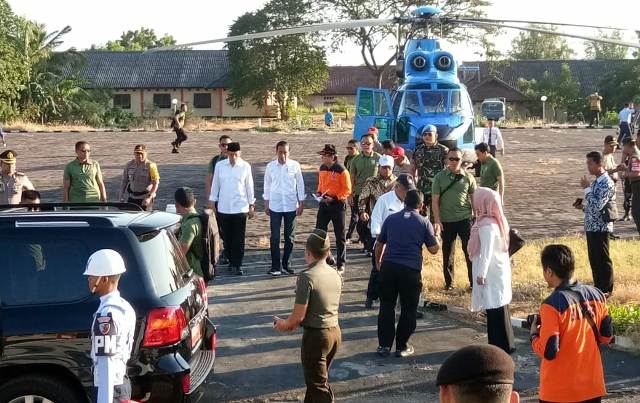 Presiden Jokowi dan Gubernur NTB TGB M Zainul Majdi tiba di Kecamatan Sambalia Lombok Timur menggunakan pesawat helikopter kepresidenan / foto: Ist