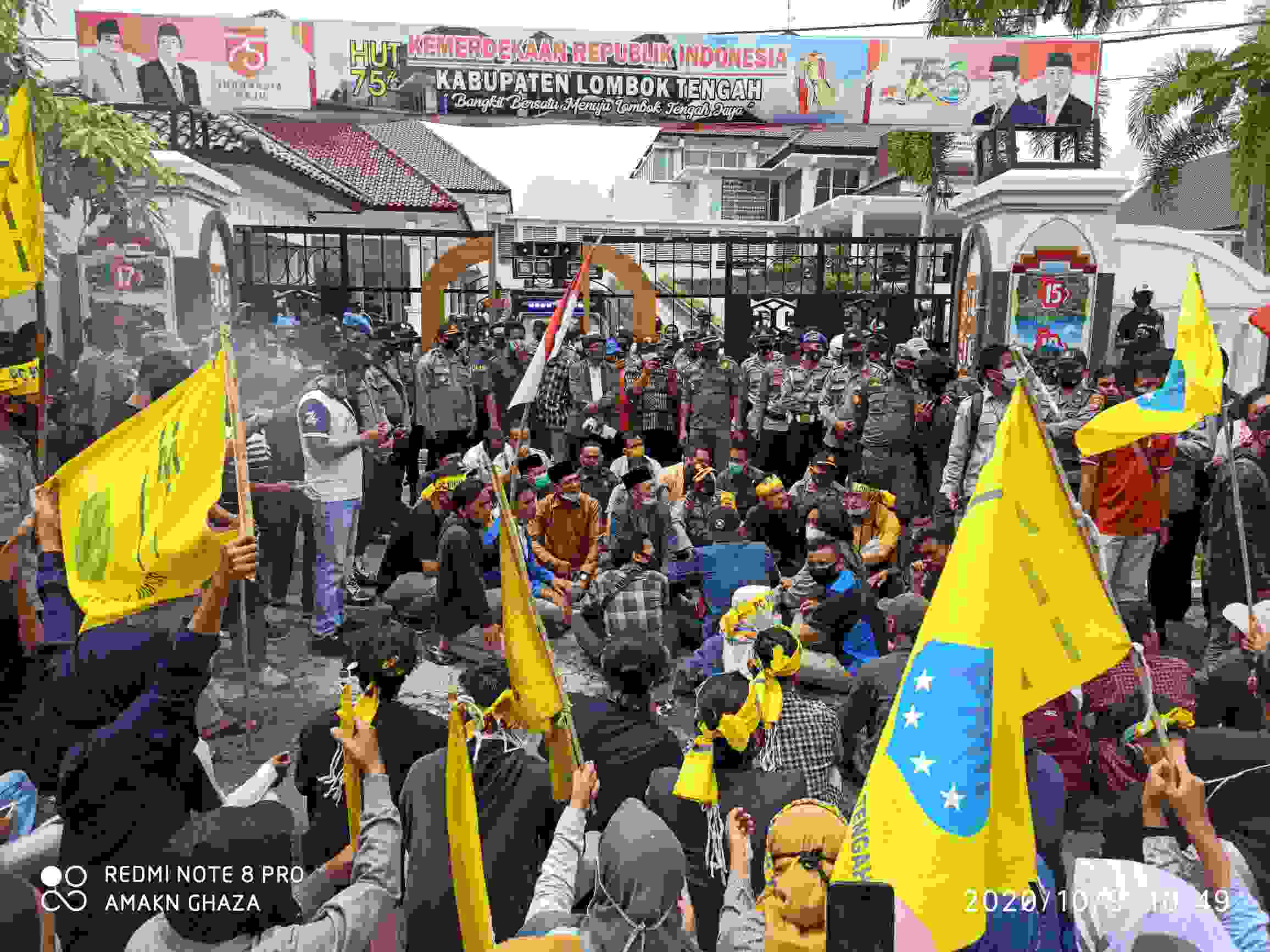Para mahasiswa di Lombok Tengah itu melakukan unjukrasa menolak disahkannya Undang-undang omnibus law yang dianggap tidak berpihak kepada rakyat.