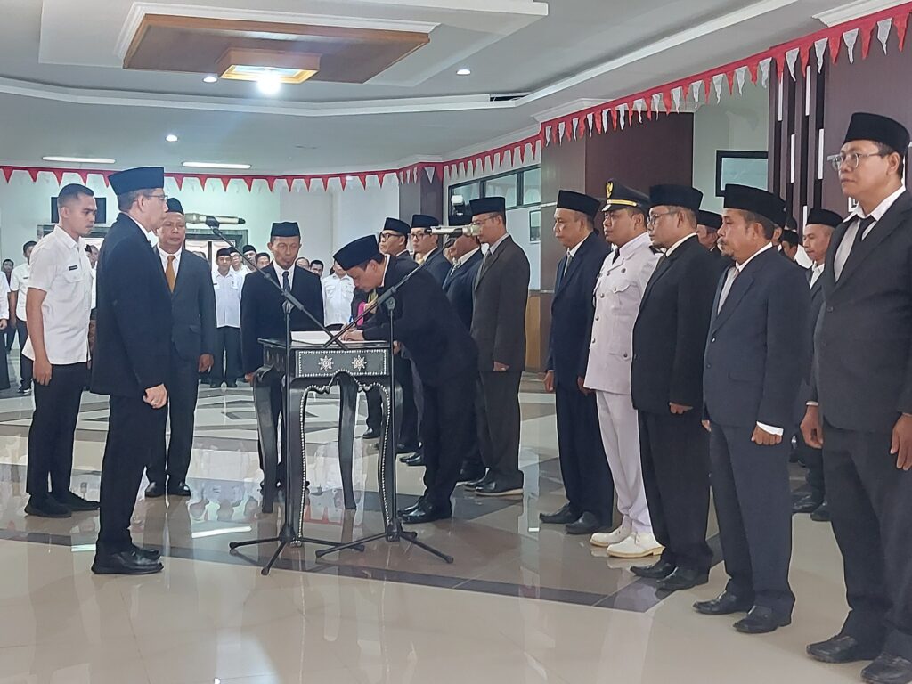 Pelantikan dan pengambilan sumpah jabatan eselon 2,3 dan 4 lingkup Pemkab Lotim dipimpin Wakil Bupati Lotim H.Edwin Hadiwijaya di loby kantor Bupati Lotim,Rabu (30/7).