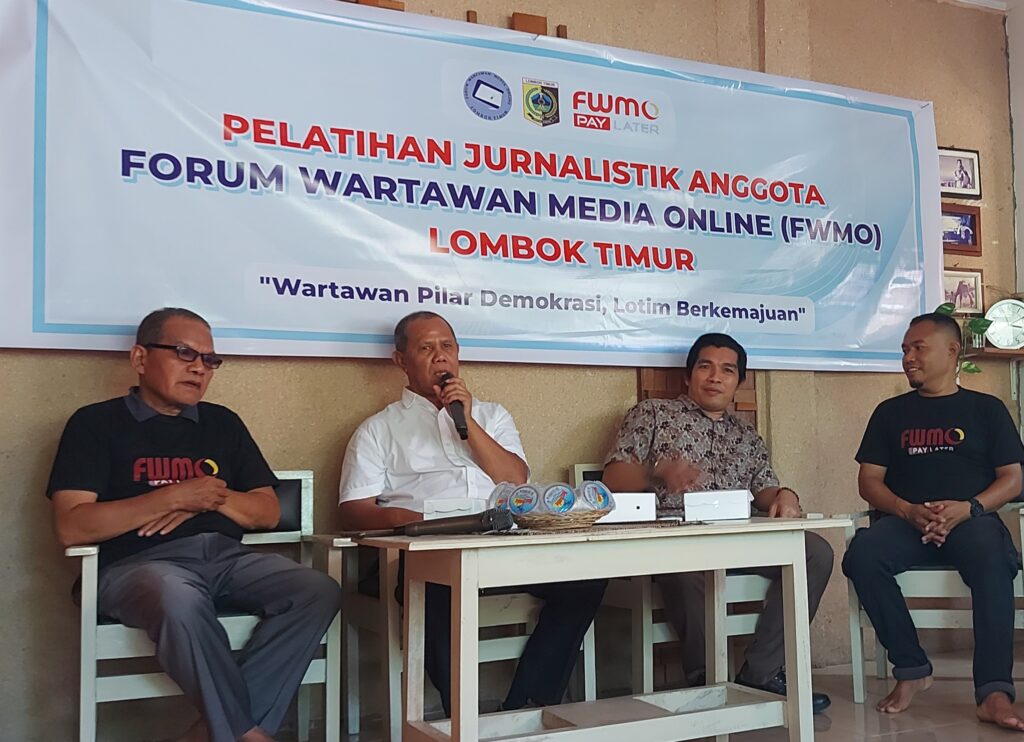 LOTIM LOMBOKita – Dalam meningkatkan kapasitas para wartawan, yang tergabung dalam Forum Wartawan Media Online (FWMO) Lombok Timur (Kab Lotim FWMO menggelar pelatihan jurnalistik dengan nara sumber H Hulain yang merupakan pakar hukum yang juga wartawan senior, serta Widiyanto wartawan senior. Dan dihadiri Penjabat Bupati Lombok Timur HM Juaini Taofik, Bertempat di Pondok Jurnal, Sabtu (15/6).
