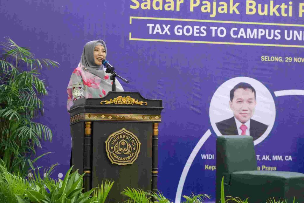 Ia menegaskan acara ini merupakan langkah strategis universitas dalam mengedukasi mahasiswa serta masyarakat tentang pentingnya kesadaran pajak sejak masih di bangku kuliah.
