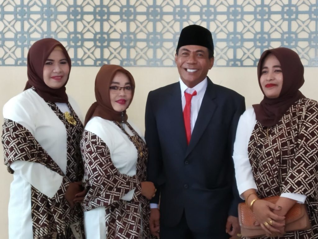 Anggota dewan asal Dapil IV (Kecamatan Praya Barat – Praya Barat Daya ini datang ke lokasi pelantikan didampungi dua orang istrinya.