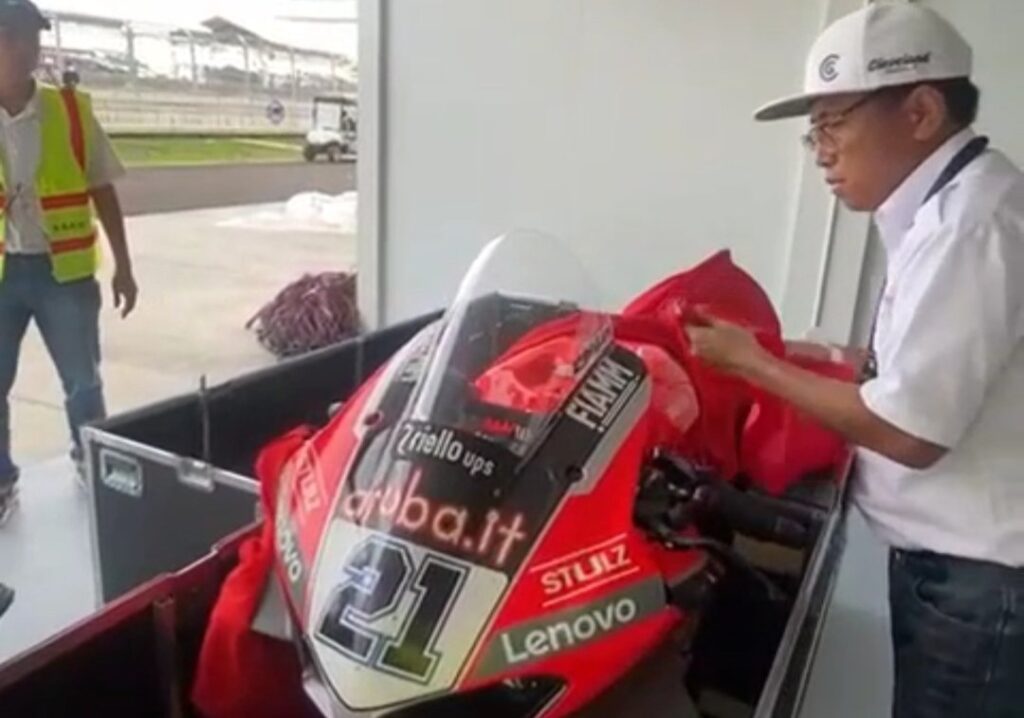Kedatangan kargo tersebut ditangani oleh phak terkait dalam hal ini Bea Cukai, Freight Forwarder dengan didampingi pihak Dorna Sport dan MGPA.