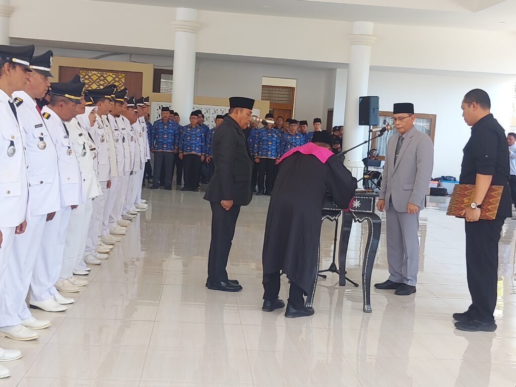 “Sekarang anda memegang jabatan, jabatan yang diemban ini untuk siapa, untuk bagaimana. Anda melayani masyarakat dengan baik dan bekerja untuk pemkab,” tegasnya.