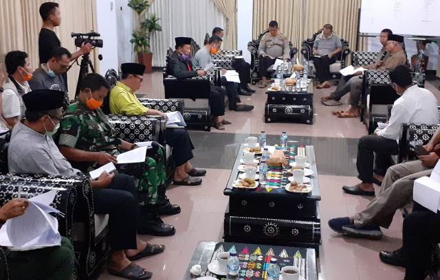 Pertemuan dengan Gugus Tugas Percepatan Penanganan Covid-19 di pendopo pupati yang menjadi posko Gugus Tugas, Rabu (1/04/2020) malam.