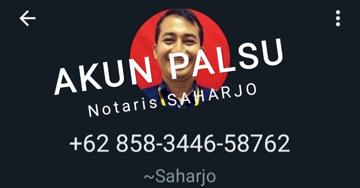 Akun palsu bernama dan bergambar Notaris Saharjo digunakan oleh oknum tidak bertanggungjawab untuk mencari korban dengan modus menawarkan sejumlah kendaraan yang hendak dilelang oleh Kantor Pelayanan Kekayaan Negara dan Lelang (KPKLN).